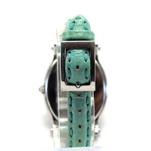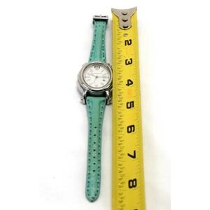 Gently used BCBG watch. Beautiful leather band. The watch face measures 32 mm by 46mm. No box. New battery installed, genuine leather band.