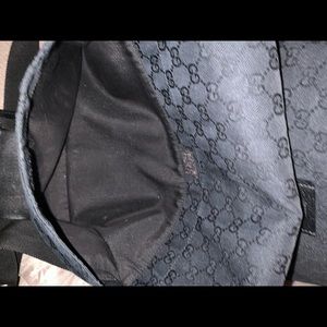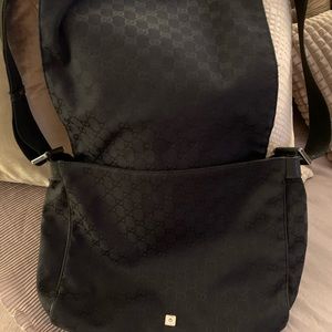 GUCCI black cloth laptop bag with interior pockets and large exterior. Strap adjustable. No stains or defects.