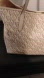 Elevate your style with this elegant designer tote bag. Featuring a chic beige and white pattern, this bag is perfect for any occasion. The spacious interior and sturdy handles make it both fashionable and functional.