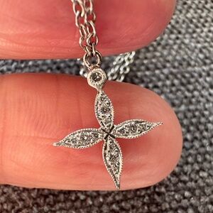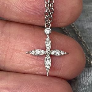 Designer CATHY WATERMAN Platinum PT900 & Diamond Star Cross Pendant Necklace