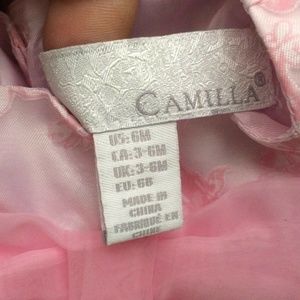 Beautiful dress with nice details. It is fully lined with pastel pink fabric which peeks through the sheer floral overlay. The dress has a pink bow in the front and three crystal looking buttons that close the dress in the back. To avoid disappointment, please check the dress measurements with those of your child.