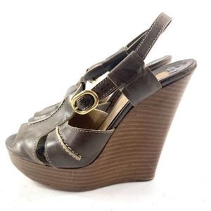 CHLOE Women’s Sz 38 Brown Leather Wood Platform Wedge Heel Sandals MSRP $695.