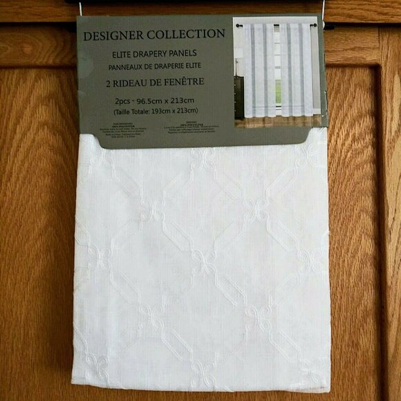 Designer Collection 2 Pk Elite Curtain Panels White Embroidered 38x84 Ea