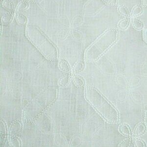 Sheer Crisp White Linen Like Weave with White Geometric Embroidery