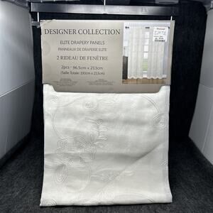 Designer Collection Elite Drapery 2 Window Panels 38 x 84 White Sheer Floral NEW