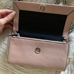 WOMENS Designer crossbody. Vince Camuto Brand • Light Pink • Silver Chain • 12 card holders • 3 full entries