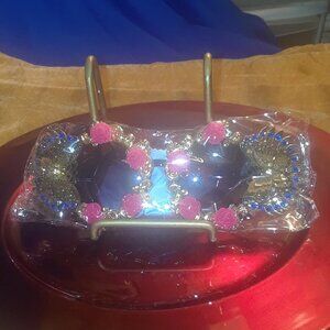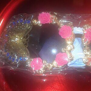 Fashion Brand Designer Crystal Oversized Sunglasses Women Mirror Big Rhinestone Rays Shades Sun Glasses Lady Diamond With BUTTERTFLY WINGS /PINK ROSES