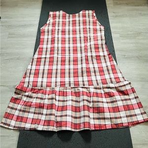 Designer Custom tailed Cotton plaid yellow sleeveless dress with self-tie belt.