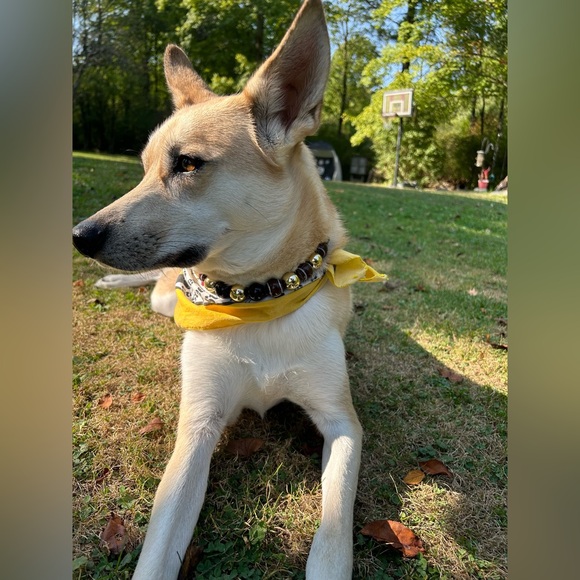 These are examples thats I made with the dogs modeling them. As you can see in the pictures I can use different sized beads as well. These are sizes Large. If you are interested in something like this please message me and we can talk about different colors and measurements. I have other necklaces that are ready to ship, just hop on over to my page & check them out!
