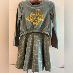 Designer Dress Coccodrillo Girls Cotton Army Green/ Gold 140 Cm 10Years