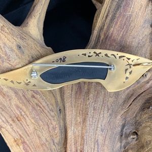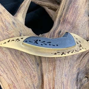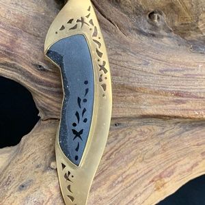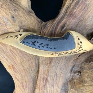 Gold cutout pin with etched druzy - unique designer brand