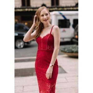 Designer EXPRESS sz 2 Red Lace Eyelet Party Cocktail Holiday Sleeveless Dress