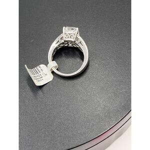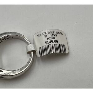 Designer Emerald Cut Lab Created White Sapphire Sterling Silver Ring Sz 7 1/4