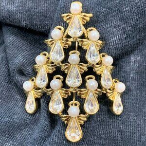 Designer Faux Diamond Pearl Angel Christmas Tree Brooch by Avon