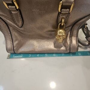 Limited edition Alexander McQueen Mini Padlock leather satxhel. Elegant gold and black handbag with a stylish design and skull. Comes with the crossbody strap. Perfect for any occasion.