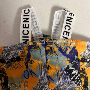 Designer Graffiti Overalls Bucket Hat 2 Piece Outfit For Labubu Orange Blue