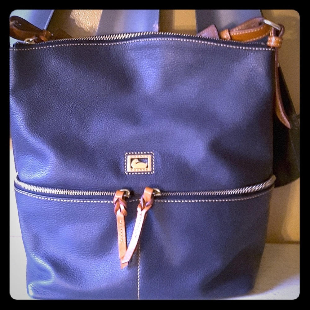 Authentic Dooney & Bourke Midnight Blue Pebble Grain Zipper Pocket Sac. Excellent Used Condition.