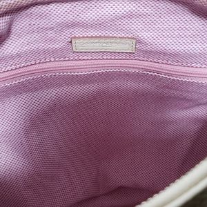 Never used. Removed the paper from inside to accurately measure the hand bag.