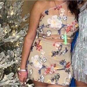 Use once. Two piece. Will fit an X SMALL OR SMALL. Skirt is short. Has mesh. Handmade.