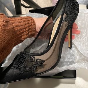 Nina New York classic sexy heels! It’s made of fabric and leather with some beautiful embroidery application. It’s a show stopper!