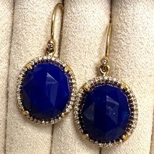 Designer IRENE NEUWIRTH 18K Yellow Gold Oval Lapis Lazuli Diamond Drop Earrings