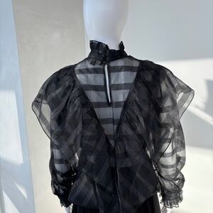 Designer Iconic Jill Stuart Ruffle Mesh Turtle Neck