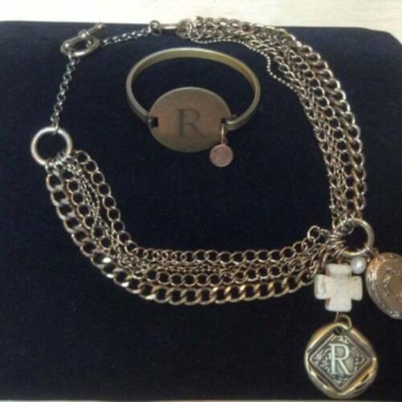 Designer Initial "R" Name Gold Tone Brass? Bracelet-Cross Necklace Jewelry