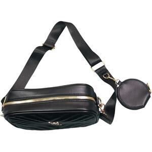 Designer Inspired Black Quilted Crossbody Shoulder Bag