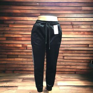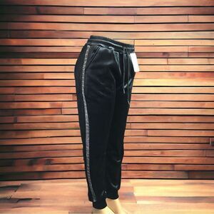 Designer Inspired Black Silver Velour Track Joggers Pants