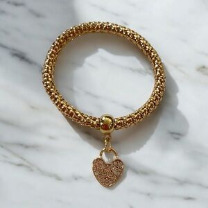 Designer Inspired Mesh Stretch Bracelet Set w/ Crystal Heart Charm Tri-Color Set