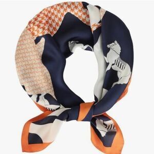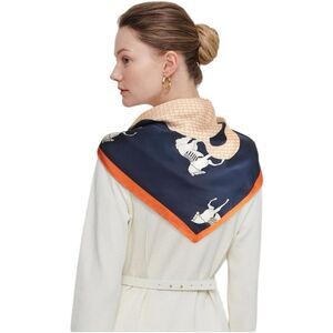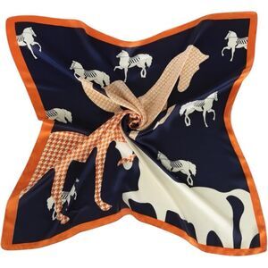 Designer Inspired Orange Navy Blue Silk Square Scarf