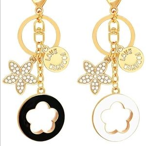 This designer inspired keychain/ purse charm is a gorgeous way to dress up your handbag or use as a keychain. They say Love Forever in a cut out design. The charm is encrusted in crystals that will add bling to any bag. Order this one in white and gold or order the black and gold version. If you order both in a bundle you save on shipping and will receive 15% off the total. This is a boutique item. Straight from the manufacturer.