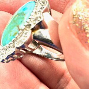 Designer JTV Womens Ring Sterling Silver Turquoise White Topaz Size 8