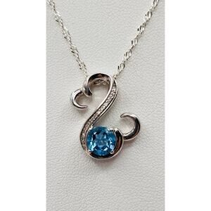 Designer JWBR Silver 925 Blue Topaz Diamonds/Moissanaite Heart Pendant Twist Rope Chain. Stones were tested. Machine cannot stone creation or tell if it’s diamond or moissanite. Item is super rare and pretty with unusual irregular shapes of love heart. Pendant stamped with designer mark. Necklace stamped 925 Italy with different maker mark. Luxury looking piece of jewelry to add to your collection. (L6d)