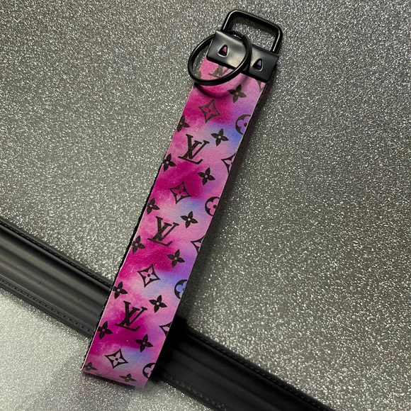Designer Keyfob - tie dye coloration. Inner material of keyfob is high quality black material, featuring black hardware with keyring.
