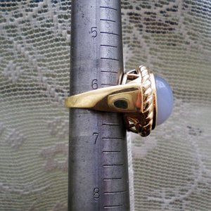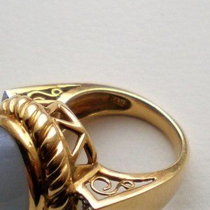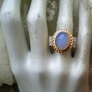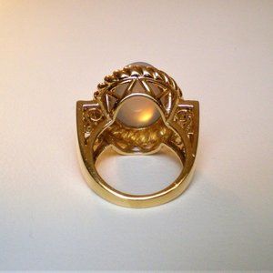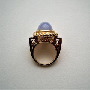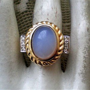 Designer Laura Ramsey 14K Yellow Gold Blue Chalcedony Diamond Cocktail Ring 12 g
