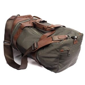 The Designer Leather Duffle Bag by Vince Camuto is a stylish and practical choice for travel. Made with a combination of durable nylon and genuine leather, this midsize weekender bag is perfect for short trips. The adjustable straps and lightweight design make it comfortable to carry, while the solid green or brown color adds a touch of sophistication. Ideal for both men and women, this duffle bag is a versatile and high-quality option for all your travels.