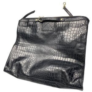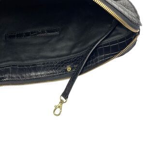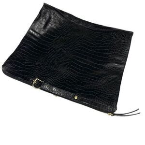 Designer Leather Cynthia Vincent Designer Croc Black Leather Bankers Clutch