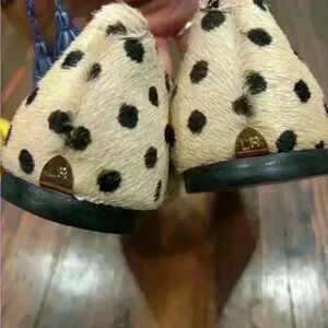 Add a touch of designer flair to your wardrobe with these Loeffler Randall calfskin pointed toe flats in size 5.5. Slip-on closure and lightweight comfort make them perfect for any occasion, whether it be a casual day out or a formal event. The multicolor design and various themes, such as festive, bohemian, and preppy, add a unique touch to any outfit. The upper material is made of high-quality calfskin, ensuring durability and long-lasting wear. These flats are a perfect addition to any woman's shoe collection, and they are sure to make a statement wherever you go.