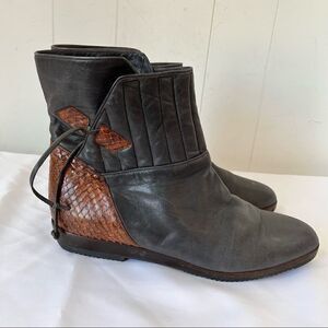 Designer Lorenzo Banfi Quilted Leather Snakeskin Slip On Boot Ankle Brown Sz 8.5
