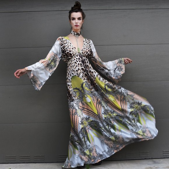 Designer Maxi Dress Soft Upcycled Roberto Cavalli Fabric Animal Print