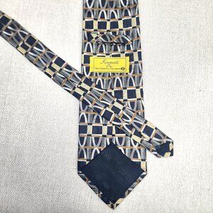 Innocenti Oro/Tom James: gray, black, gold, white, geometric design, 100% silk, Hand tailored in the USA, Measurements 4" W x 59" L