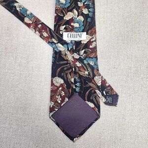 Cellini Collection: Black background, multicolored floral design, 100% silk, Hand finished in USA, Measurements 4"W x 59" L