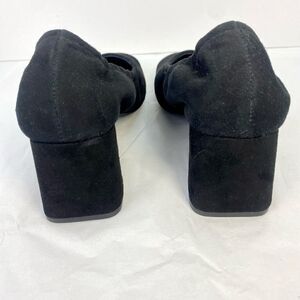 New Mercedes Castillo Suede Black Pumps, round toe with elasticized trim, with unique suede covered triangular shape Funky Art Deco Heel