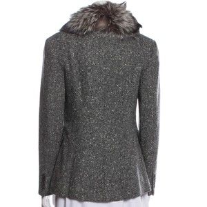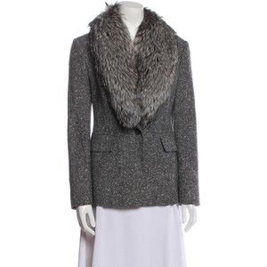 Designer Michael Kors Collection Grey Tweed Shawl Collar Fox Fur Trim Blazer Med