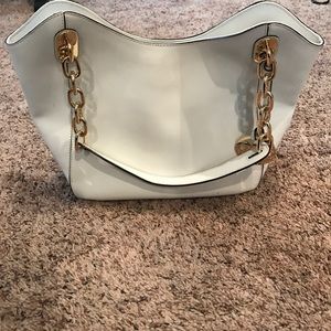 Like new, medium-large white leather and gold shoulder Michael Kors Purse! This purse is super sharp! Lightly used!