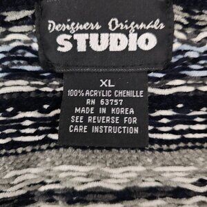 Designer Originals Studio Vintage Knit Zip Up Chenille Blue Cardigan Sweater Size XL