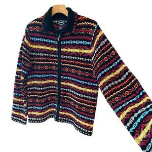 Designer Originals Sz M Black Chunky Knit Striped Full Zipper Weekend Shacket