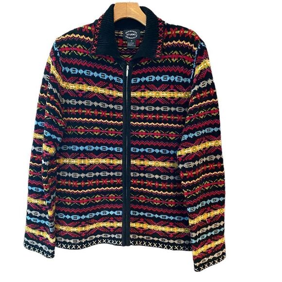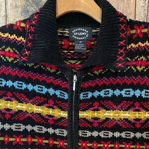 Designer Originals Sz M Black Chunky Knit Striped Full Zipper Weekend Shacket
