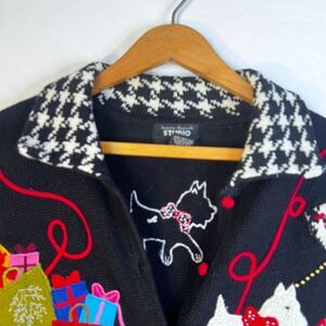 Designer Originals Vintage Ugly Christmas Knit Sweater Black Retro Y2K Sz Large